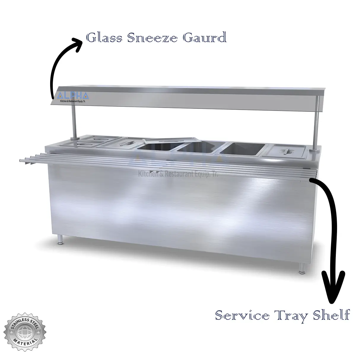 - Includes tray slider, sneeze guard glass shelf