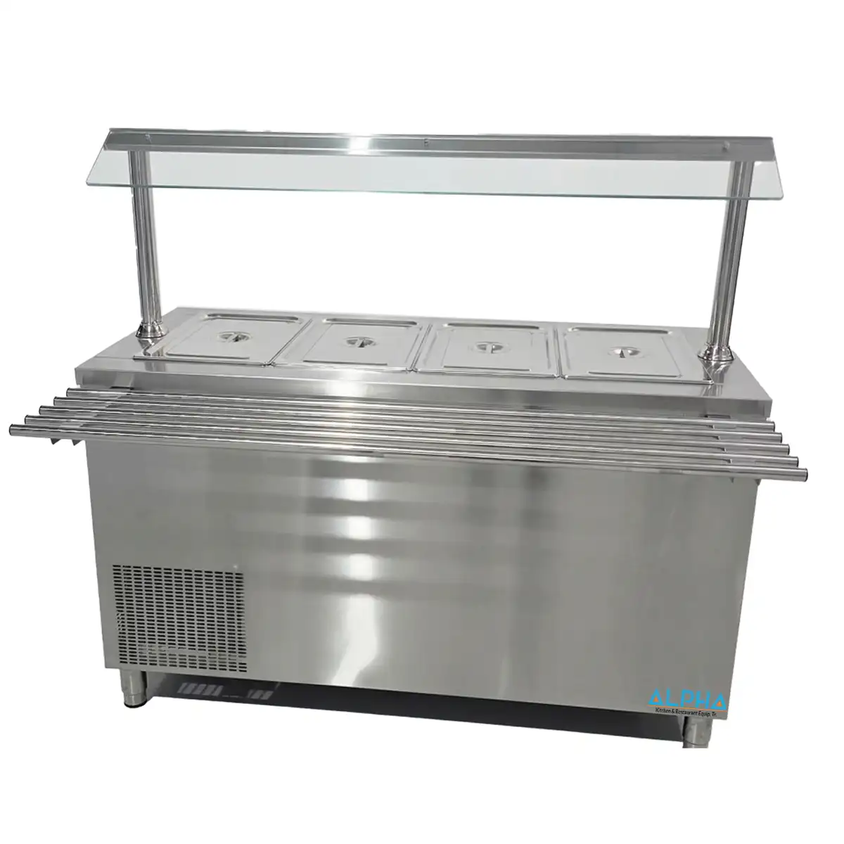 A slow buffet line deeply frustrates hungry customers. However, this commercial salad bar counter solves that problem completely. The integrated tray slide moves guests along the station smoothly and quickly. Consequently, your cafeteria serves significantly more people in a much shorter timeframe.