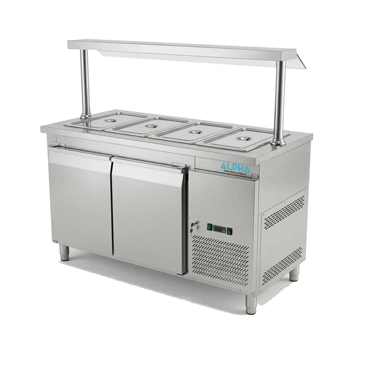 This refrigerated salad bar counter elevates your entire self-service operation. First, the tubular tray slide allows customers to glide their plates effortlessly along the station. Consequently, you speed up the customer flow during massive lunch rushes. Furthermore, the protective glass sneeze guard completely shields fresh food from airborne contaminants. As a result, your restaurant easily passes the strictest health and safety inspections. Finally, the two-door refrigerated base provides massive backup storage for extra ingredients.