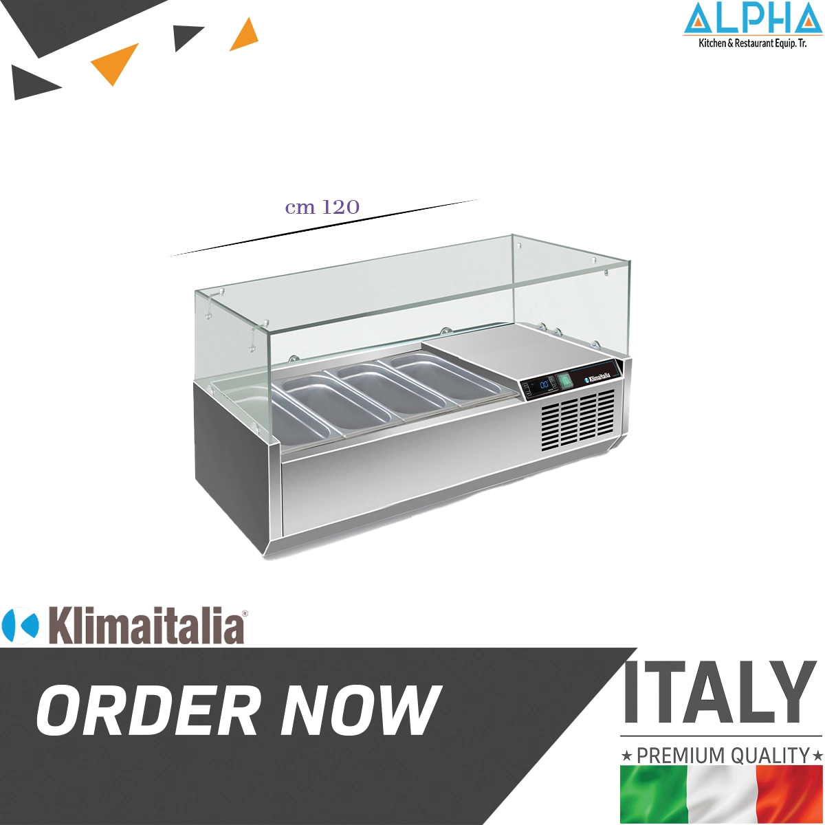 The display includes a glass superstructure, enhancing visibility, and comes with 3 adjustable separators and a capacity for 4 GN 1/3 pans (not included), giving you flexibility in organizing your offerings. With its compact size (1200x395x435 mm) and low energy consumption of 1.3 kWh/24h, this model is perfect for countertops or limited spaces.