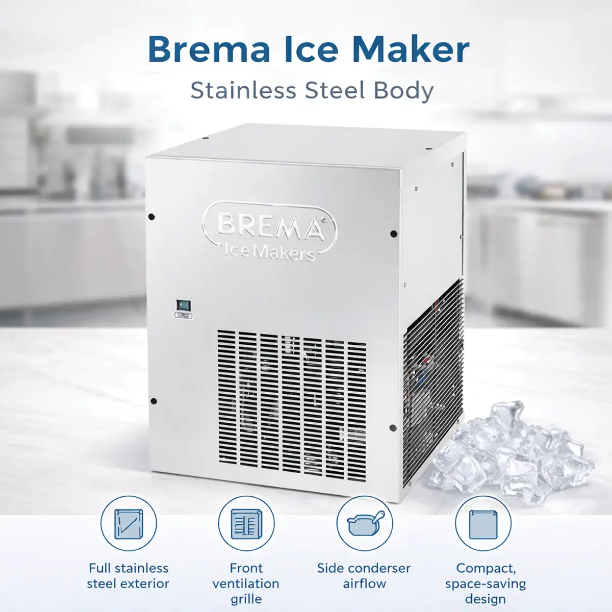 Don’t forget we have bigger capacity (Ice Cube Maker 95kg CB955) and smaller also ( Brema Ice Maker CB184 ) , (Ice Flakes Machine 95kg)