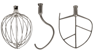 - Stainless steel Whisk, Dough hook and Flat beater included