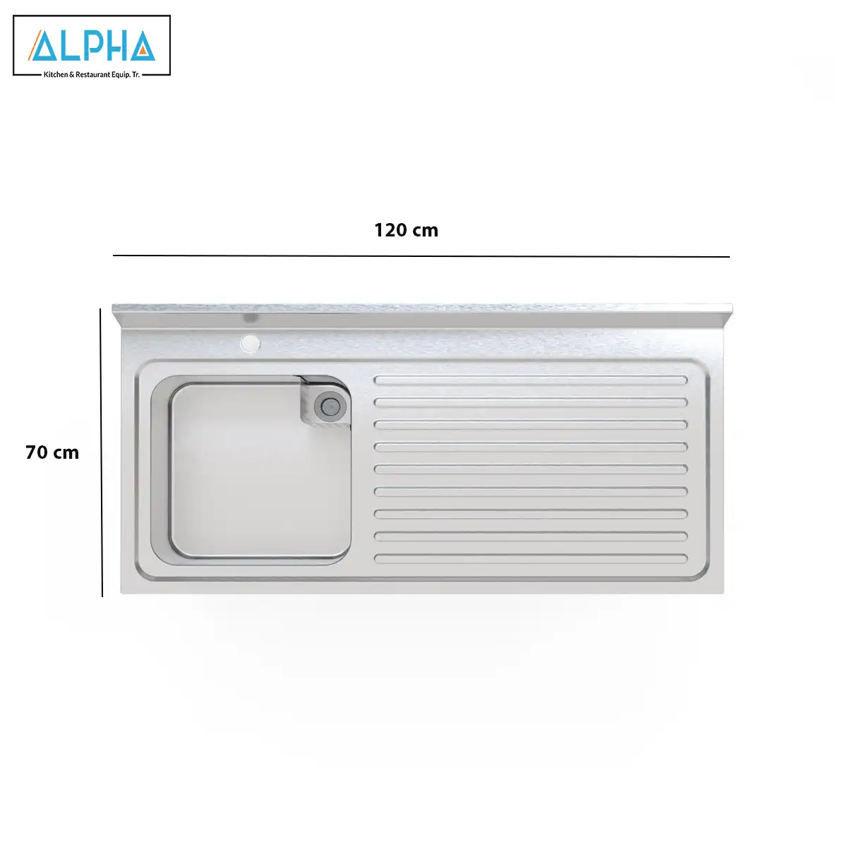 Stainless Steel Single Bowl Sink 1200mm – Right Hand Drainer | single bowl stainless steel kitchen sink For stainless steel products for the hospitality industry you are at the right place at ALPHA Factory ! Our stainless steel factory makes all stainless steel products exactly in the sizes you specified within 2 weeks. The stainless steel what ALPHA Factory used for customization is of very high quality AISI 304 and absolutely suitable for HEAVY DUTY use. The factory welds all products in a professional manner, making everything for very professional use and the service life is also very long!