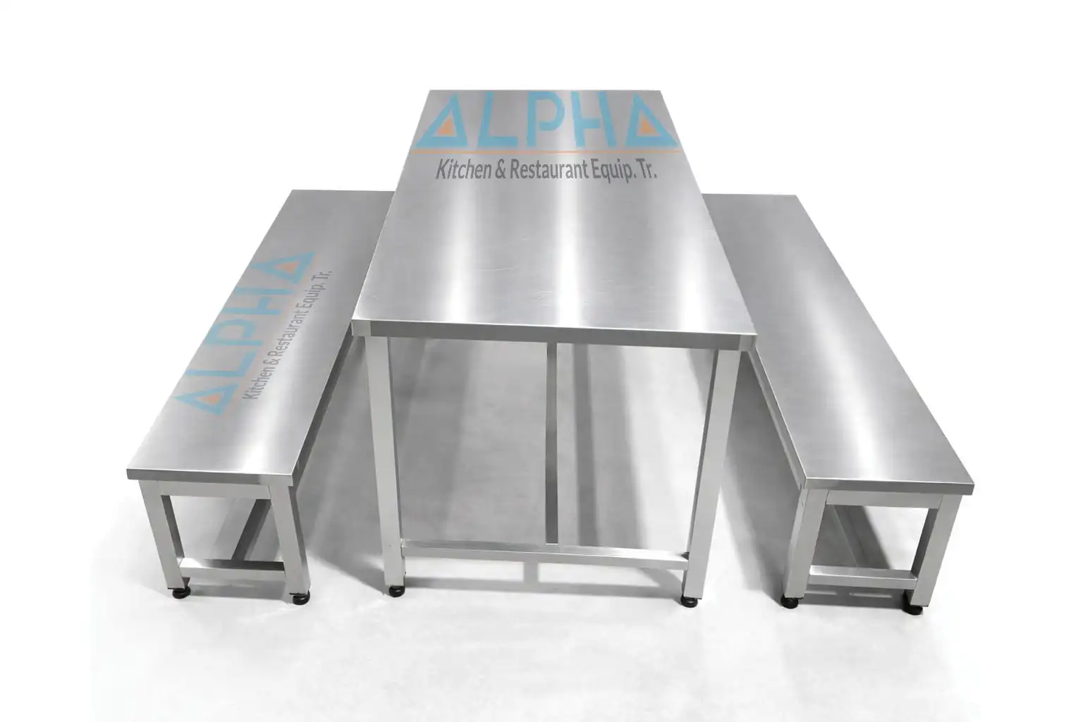 Furnishing a high-volume staff cafeteria requires extreme durability. Therefore, we manufacture this integrated dining table and bench entirely from commercial stainless steel. The standard 200cm model easily seats multiple adults simultaneously. Consequently, you can process large groups of employees efficiently during their limited break times.