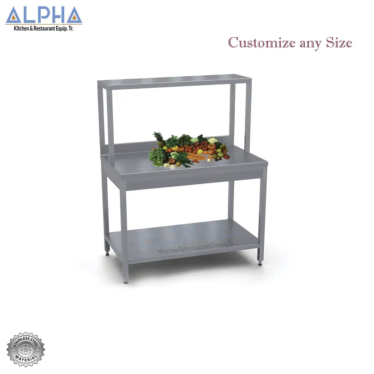 (different Sizes on demand) Ask to customize your size | s steel work top table with back splash & undershelf